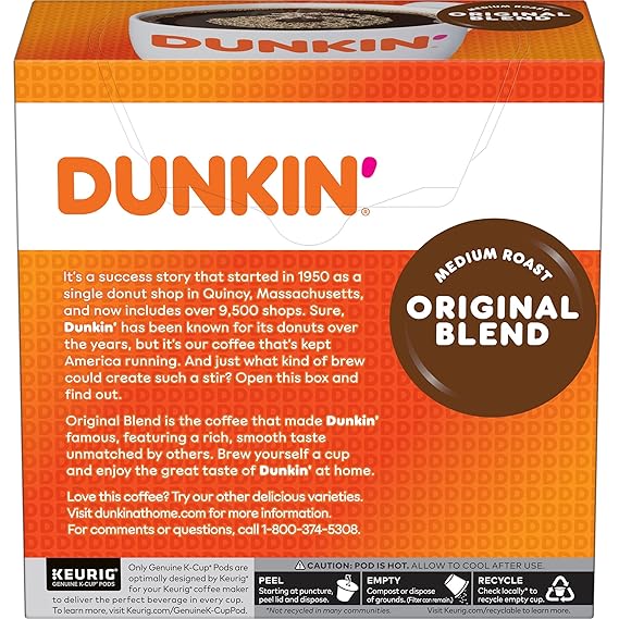 A true classic. Dunkin’ Original Blend is rich, smooth, delicious and ready to brew in convenient K-Cup pods for your Keurig Brewer. Our legendary recipe uses premium beans, which the industry regards as a superior grade of coffee